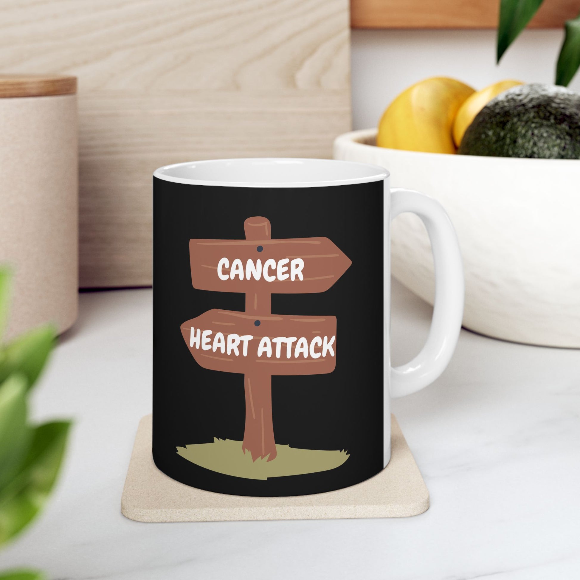 Need to transport hot liquids without burning your mouth or hands? But also want to remind yourself of life's fragility? Well, The Life Choice Mug 11oz(330ml) is for you! Perfect for coffee, tea and hot chocolate, this classic shape, durable ceramic mug comes in the most popular size.